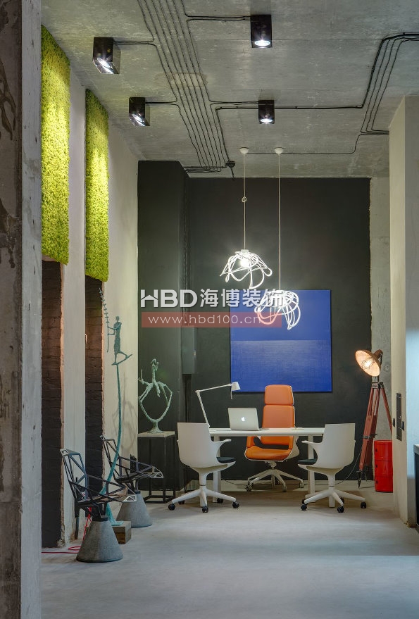 廣州裝飾公司建議多在家具和裝飾上下些工夫,可以參考一下這系列的辦公室裝修圖片,用顏色去豐富視覺,創(chuàng)意家具和燈飾擺件是必須的,因為如果你在這里放上傳統(tǒng)規(guī)矩款的家具,要么是木色要么是白色,那看起來才真像是沒有做過裝修。