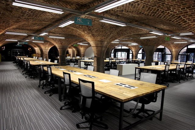 很難想象在山洞里開設辦公室裝修設計會長成什么樣,今天廣州海博裝修公司為您帶來一個創意爆發的辦公室裝修設計空間,本案將辦公室裝修成創意山洞,這里面包含了開放式辦公區,會議室,大型活動區、休閑空間,甚至還有廚房和淋浴間。自然光線通過大窗子進入辦公區,而裸露的磚塊讓它看起來像一個特意做舊的LOFT工業風元素,整體來看,這是個非常不錯的創意辦公室裝修設計改造,不知道在這里上班,是什么感覺呢?