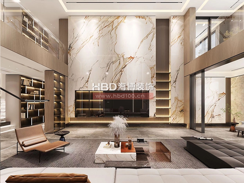 本案HBD設計從整體到局部,硬朗流暢的線條充分顯現出現代簡約風格的魅力。米色大理石的地面華貴而不庸俗,當今的住宅設計不僅要尊重客戶喜愛的風格,同時也注重實用性,符合現代人的生活品味。素色的地面石材在設計師手中變化著表現形態,家具、飾品、隔斷等元素與之相互輝映,深耕精致華麗的家裝住宅裝修設計視覺享受。