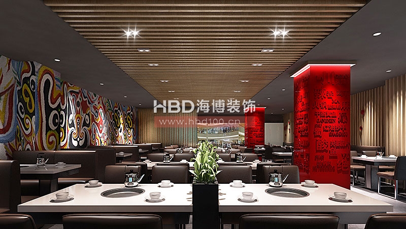 絕椒川菜館裝修設(shè)計(jì)項(xiàng)目位于天河區(qū)五山路尚德大廈,面積約300方。本次海博裝飾承接了絕椒餐廳的餐廳設(shè)計(jì)及商標(biāo)規(guī)劃設(shè)計(jì)。餐廳設(shè)計(jì)取色于椒紅色,設(shè)計(jì)元素以川譜、川劇及中式雕花隔斷為主。整體塑造了一個(gè)食欲感爆棚的餐飲空間,在這里不僅能得到舌尖上的滿足,也讓顧客對(duì)川文化有了更深的認(rèn)識(shí)。