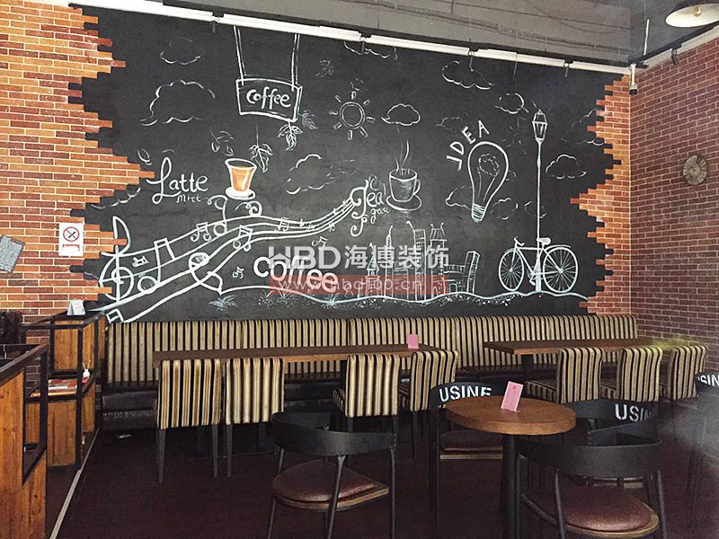東岳大廈Loft工業風咖啡館設計裝修實景,現在就讓我們一起去現場近距離感受設計的美,一起感受下HBD海博裝飾項目施工成果的藝術盛宴吧!海博裝飾在本案咖啡廳設計中遵循人與自然和諧相處的理念,裸妝墻面,形成一種奇特的肌理效果,有點神秘,又有點特別,整墻黑板的設計概念,讓前來消費的顧客隨心所欲地暢想未來,為整個氛圍平添了一些浪漫氣息。桌子上擺放的綠植,增添了幾分浪漫。木質材料融合皮質設計桌椅,讓人頓生懷舊之感,也能滿足空間的使用功能。